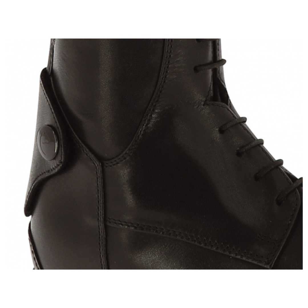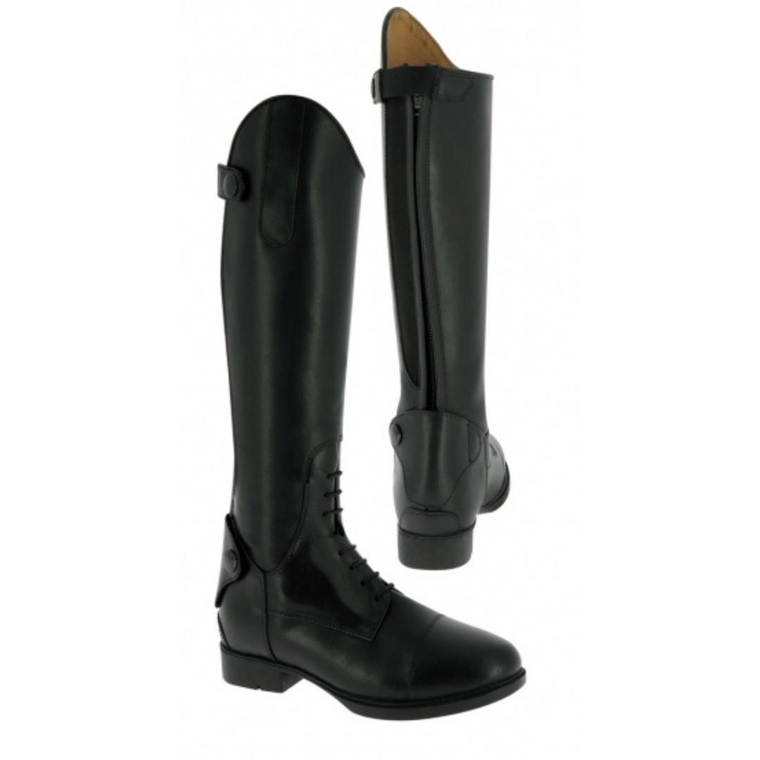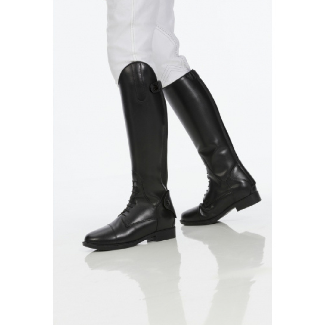 Las botas juveniles Equitheme se cierran con un cierre YKK en la parte trasera montado sobre un soporte elástico que permite el ajuste óptimo a lo largo de toda la altura del eje.