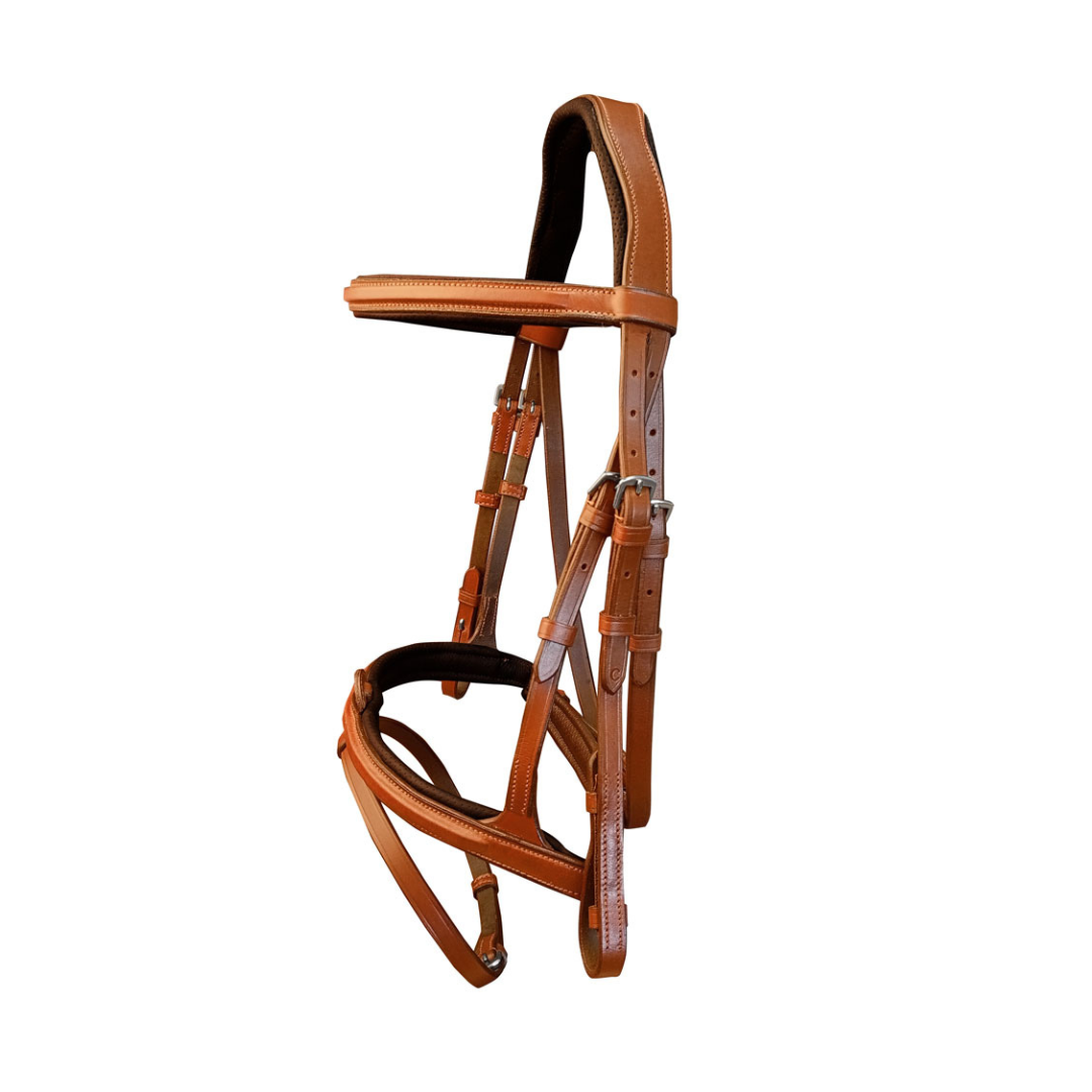 Muserola alomada de suave acolchado. Resalte de cuero al igual que la frontalera.