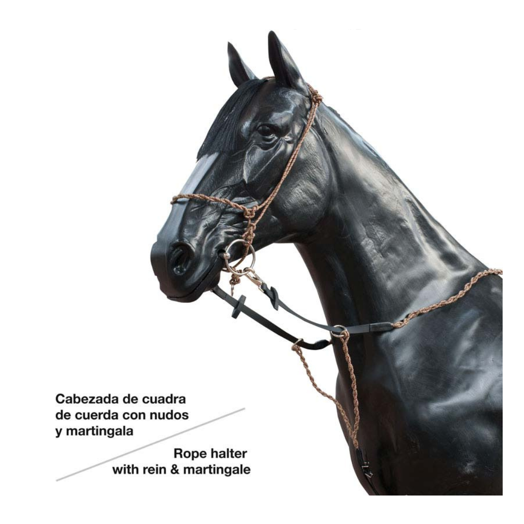 Cabezada cuadra de cuerda con nudos y martingala.