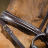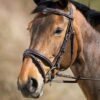 Elegante cabezada con bordado decorativo con testera anatómica, frontalera y muserola acolchados y forradas con cuero suave
