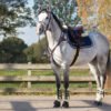 Cabezada de forma anatómica con suave forro de pelo sintético. El forro previene la irritación y, por tanto, es perfecto para caballos con piel sensible. Las costuras blancas y las costuras decorativas le dan un aspecto lujoso a la brida. Con acolchado suave en el cierre de la muserola.