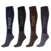 Calcetines de montar con el logo de Pikeur. Tienen un pie acolchado con la parte de la pierna más oscura, hecha de un tejido elástico delgado que es perfecto para las botas de montar. Con Pikeur escrito por el lado del calcetín.