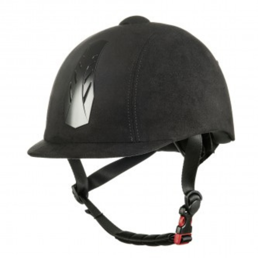 Casco New Air Stripe HKM, con abertura de ventilación tanto delantera y trasera, con parte interior acolchada y suave, con 4 puntos de seguridad. Talla de fácil ajuste.