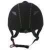 La calota de este casco está recubierta de microfibra. Su zona central está adornada con 2 cenefas con incrustaciones de strass transparente.