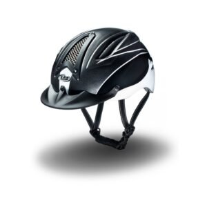 Con dos grandes salidas de aire para mejorar el interior de la ventilación. La cáscara externa es brillante. La correa tiene cuatro puntos de fijación para mejorar el ajuste. Aplicada nuevo regulador P, más ligero y compacto para mejorar aún más el ajuste y comodidad. El acolchado interior es extraíble y lavable, hecho de tela respirable suave también hemos incluido un kit de relleno adicional de diferentes grosores para ajustar el casco para cada jinete y brindando siempre un ajuste ideal.