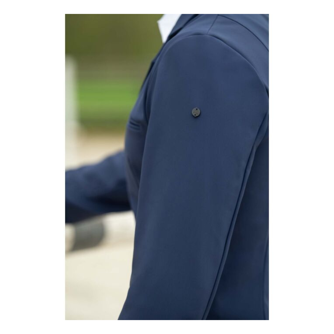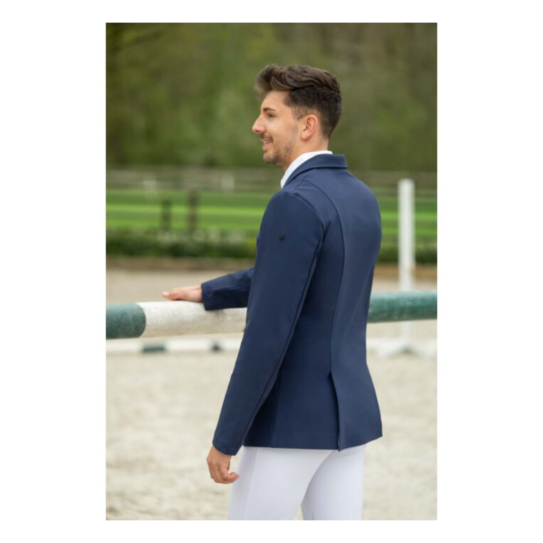 Exquisita chaqueta de concurso para hombres de tela respirable, a prueba de viento. Cuenta con material elástico en 4 direcciones y tiene 2 bolsillos por la parte delantera.