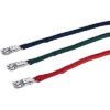 La elasticidad del tercio superior de este cabestro en polipropileno suave está destinado muy particularmente a los caballos que tienden a tirar de la muserola de la jáquima. Con mosquetón de pánico de acero niquelado. Longitud 2,4 mts. En variados colores.