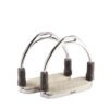 El estribo articulado y amortiguador "Safety" proporciona una seguridad óptima gracias a su articulación bi-sentido que acompaña el movimiento del jinete. Garantiza también una posición "talón bajado" perfecta. Los muelles integrados en la suela y que unen las ramas preservan las rodillas y las pantorrillas del jinete de los choques mientras alivian su columna vertebral y la de su caballo. Se suministran con suelas blancas intercambiables.