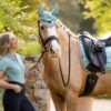 La parte superior de satén tejido Loire se complementa con un forro de mezcla natural de bambú, maravillosamente suave y transpirable. El material de bambú regula el calor y absorbe eficazmente la humedad para mantener a tu caballo fresco bajo la montura.