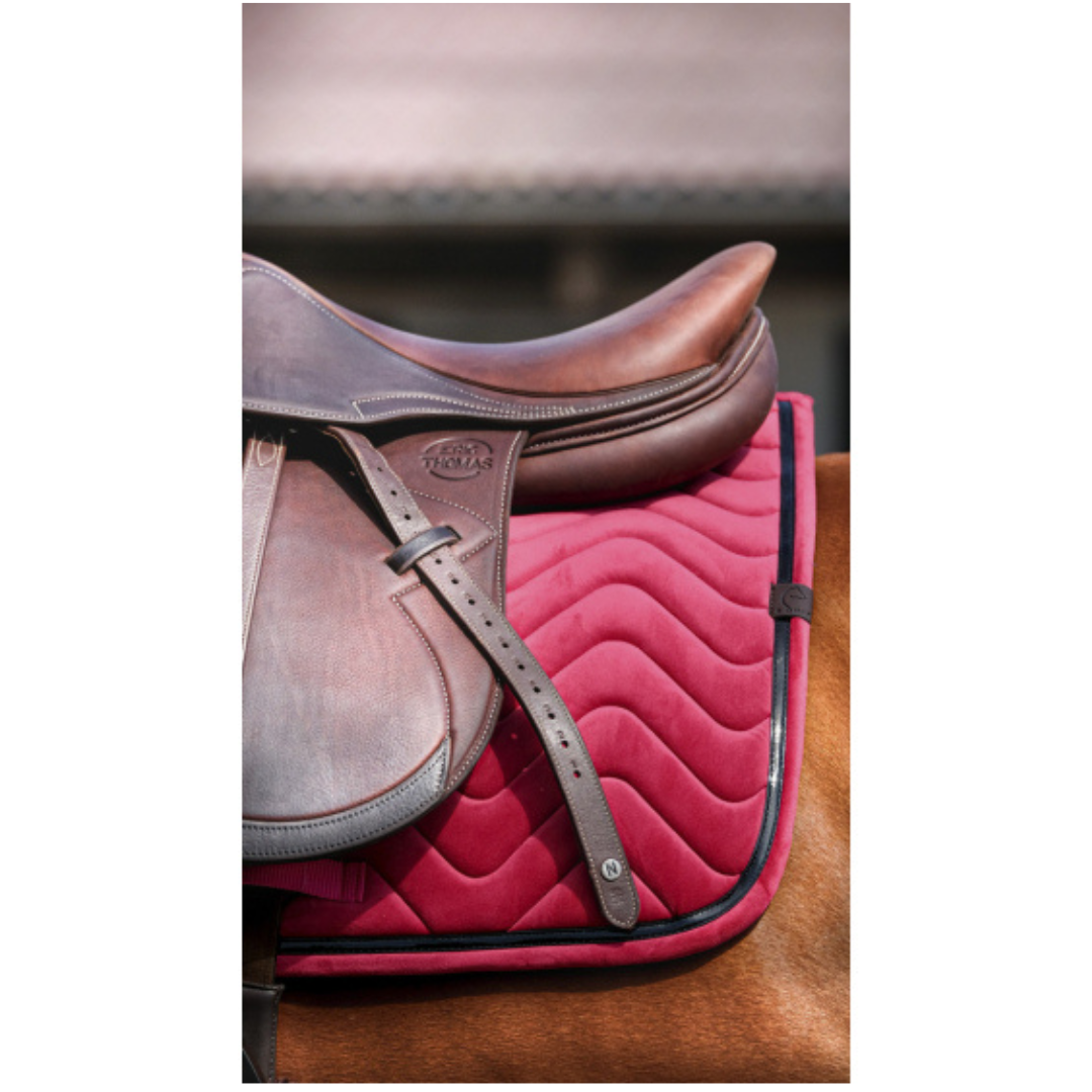 Colores de moda, elegante tejido de terciopelo y un borde brillante definen este precioso mandil Glossy de Equitheme.