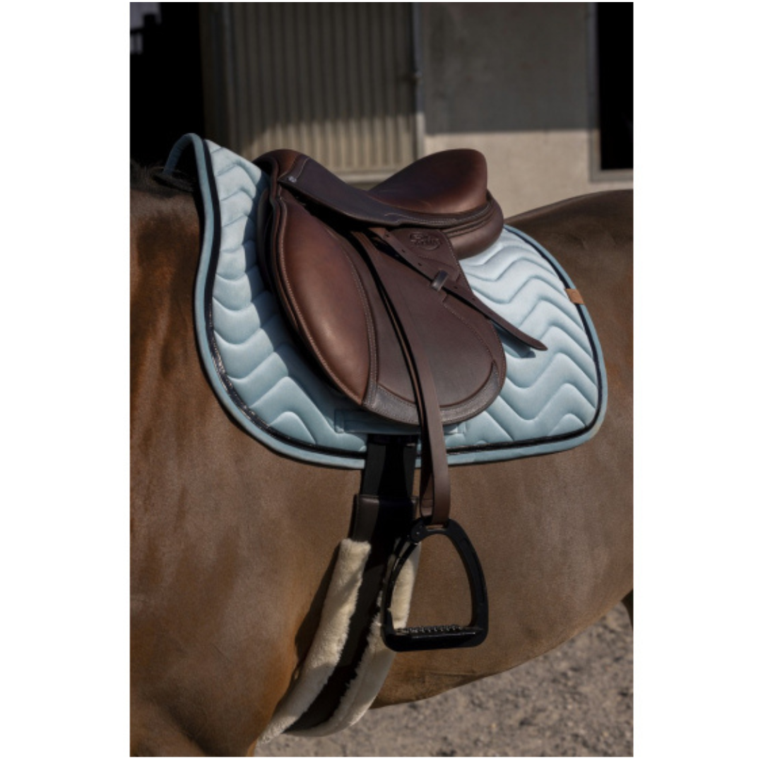 - Su acolchado de poliéster (200g/m²) y espuma (8mm) que amortigua los golpes sin alejarte demasiado de tu caballo