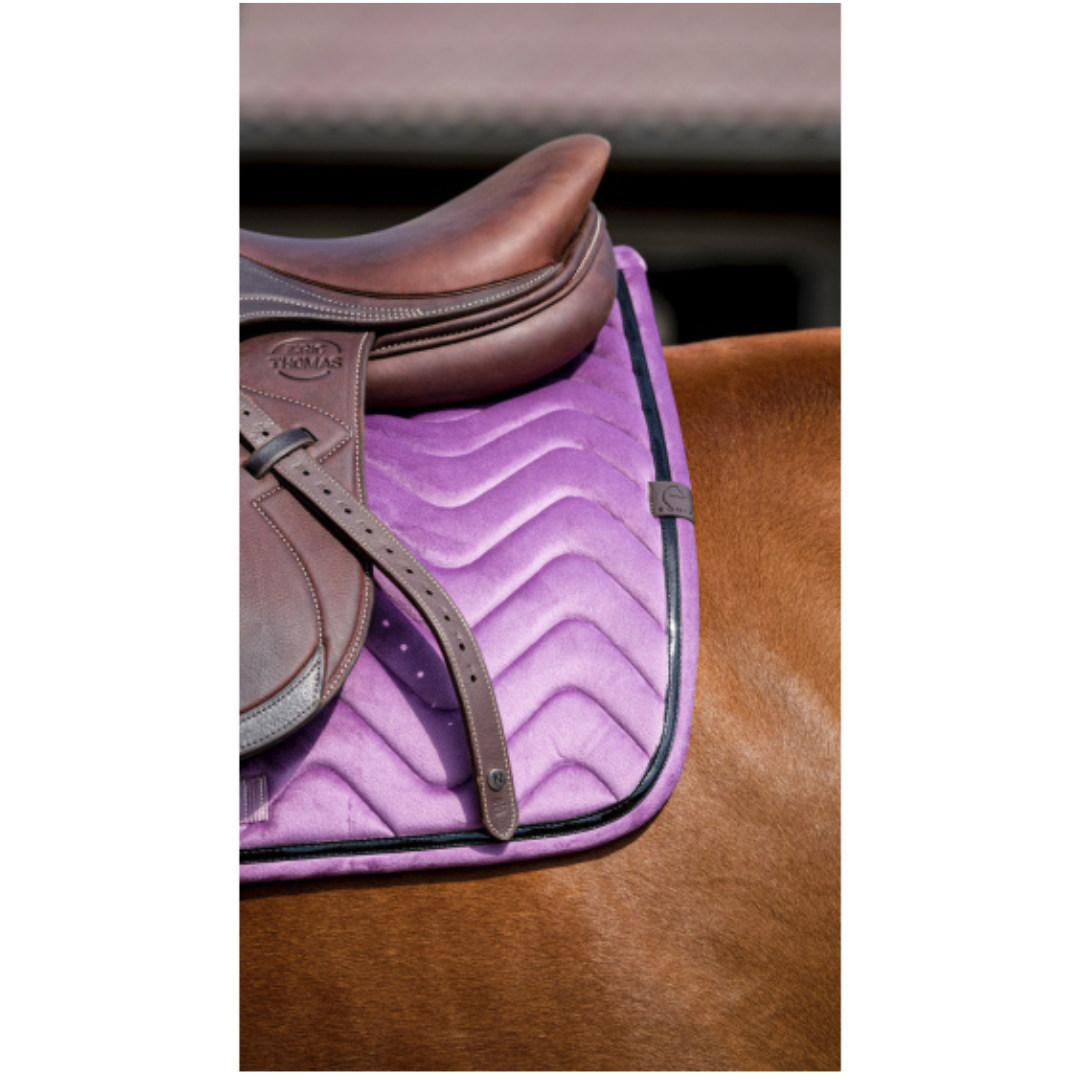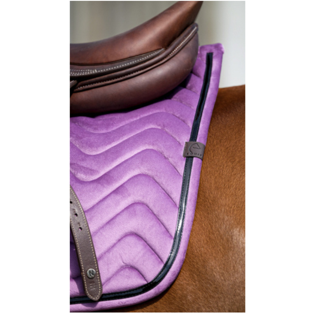 Colores de moda, elegante tejido de terciopelo y un borde brillante definen este precioso mandil Glossy de Equitheme.