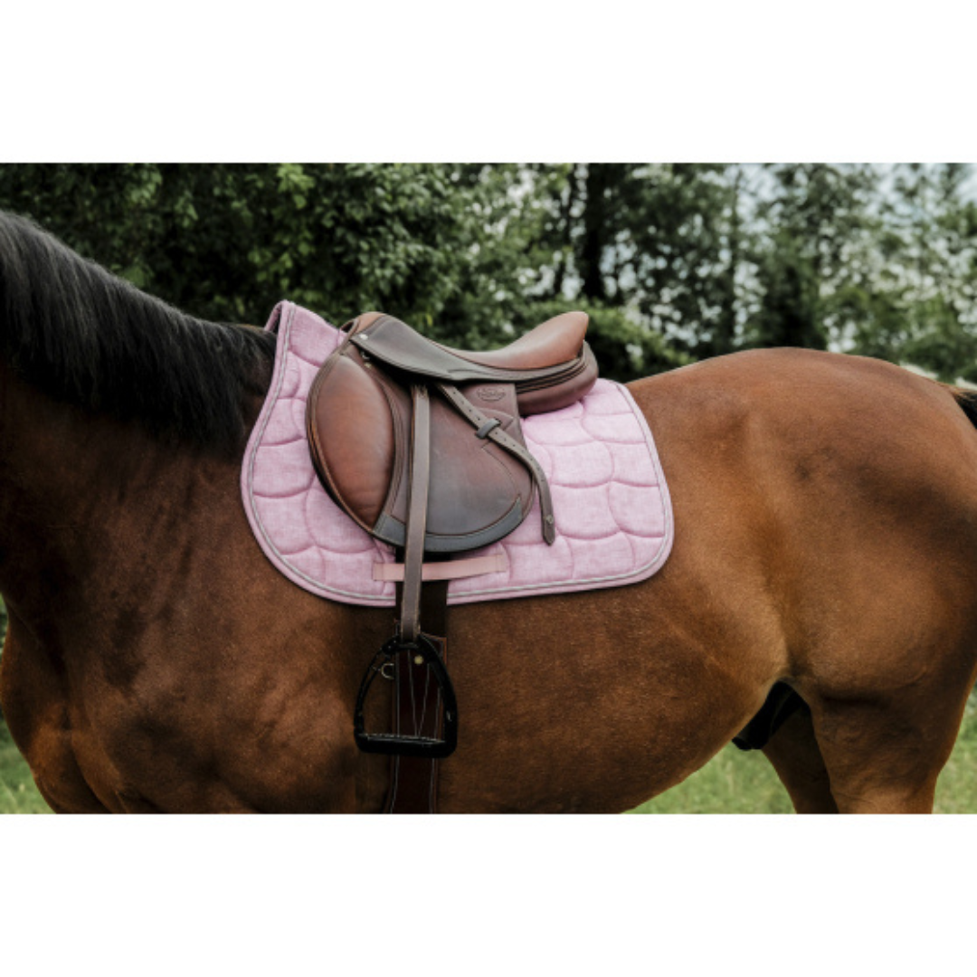 Disponible en una paleta de coleres pastel, este mandil se adapta a todos los estilos y combina perfectamente con diversos atuendos y equipos. Su material transpirable garantiza la comodidad de tu caballo al absorber eficazmente el sudor y repartir la presión de la silla.