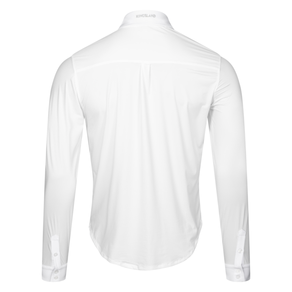 La polera de concurso Kingsland con cuello abotonado, trabilla con impresión del logotipo KL y logotipo Kingsland bordado en el pecho, funcional en tejido italian con control de la humedad.