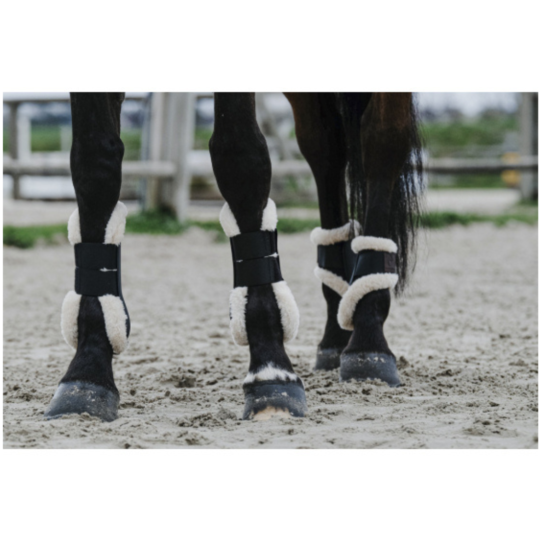 Están compuestas por una carcasa exterior de poliuretano, estos protectores abiertos, tipo protecciones alemanes, amortiguan los golpes y evitan la fricción durante el entrenamiento o competencia. Limitan las irritaciones y dan un toque de elegancia al equipo de tu caballo.