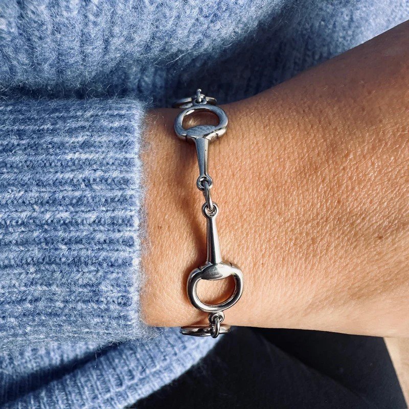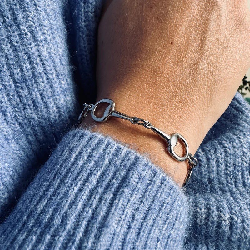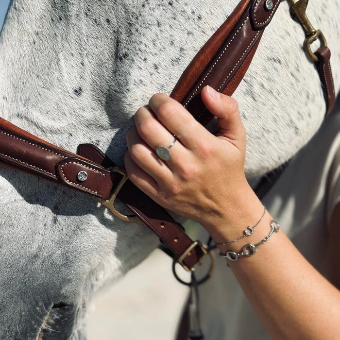 La pulsera Pépito es una pieza clásica de la joyería ecuestre. Con sus múltiples piezas de acero inoxidable, puede ser un bonito regalo y adornará elegantemente las muñecas de las amazonas.